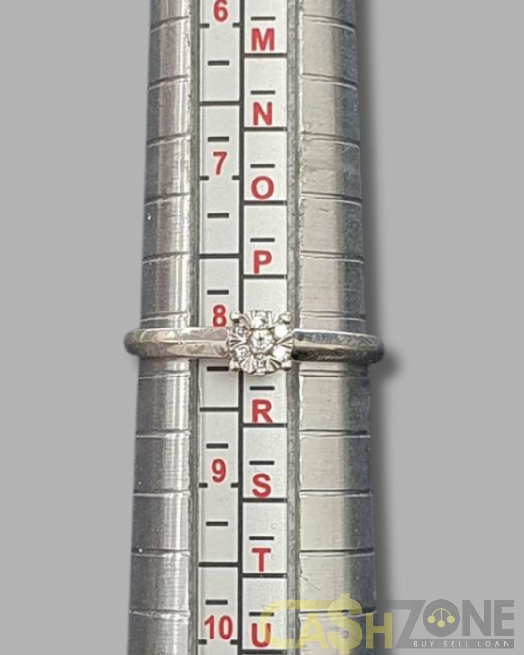 Ladies 9ct White Gold Ring With A Cluster Of 6 Clear Stones.