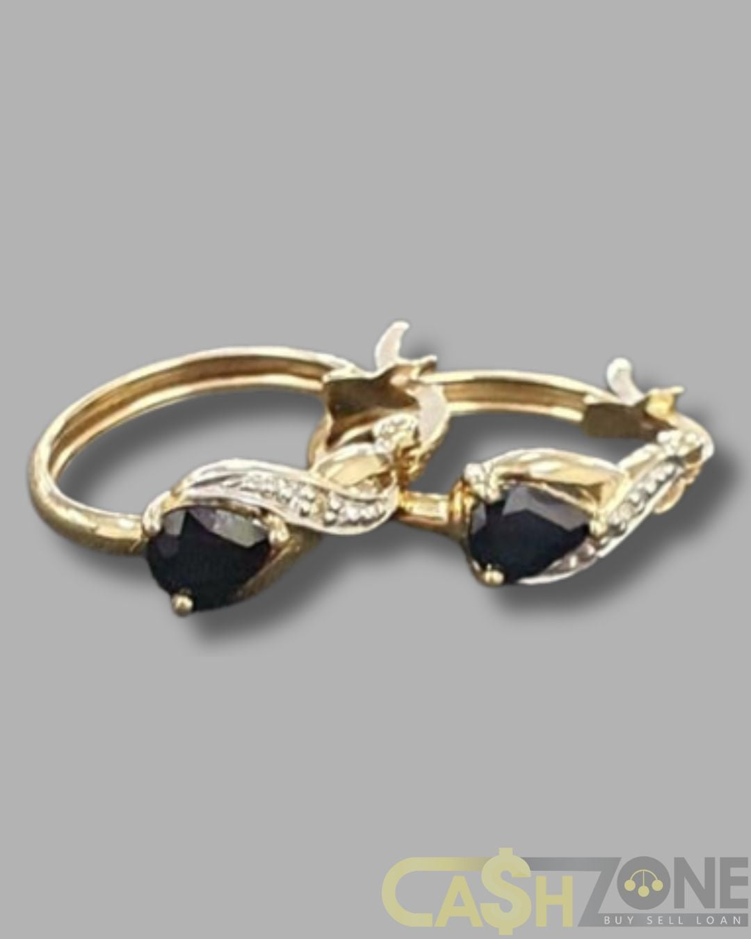 Ladies 9ct Yellow Gold Earrings With Black Stone.