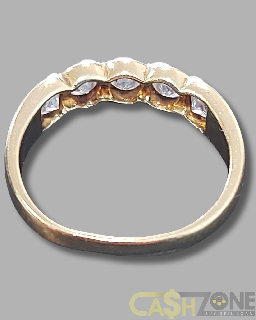 Ladies 9ct Yellow Gold Ring With 5 Clear Stones.