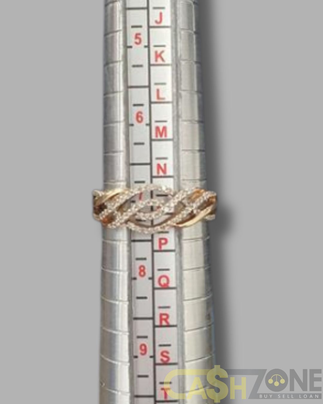 Ladies 9ct Yellow Gold Cross Over Ring With 52 Clear Stones.