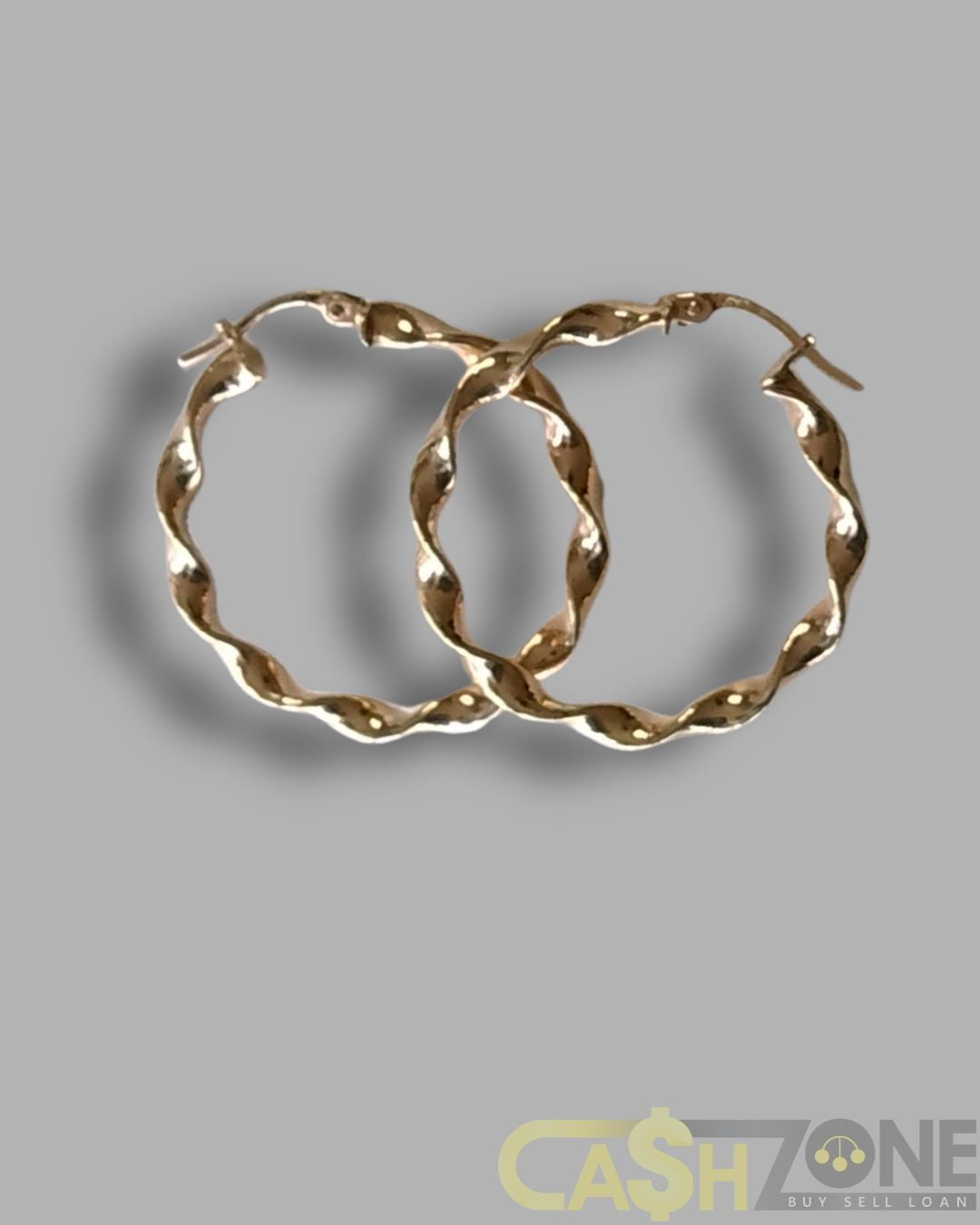 Ladies 9ct Yellow Gold Twist Hoop Earrings.