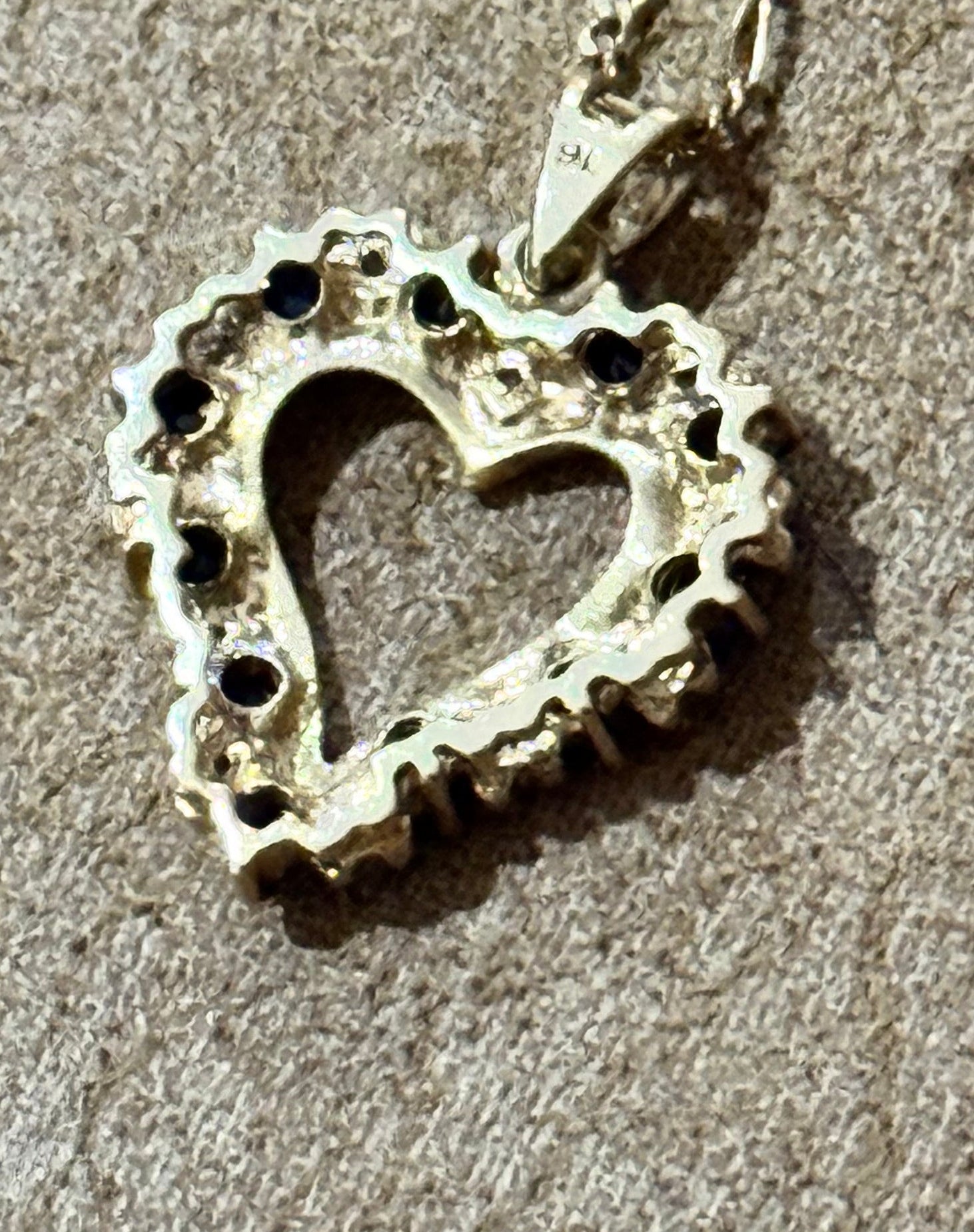 Pre-Loved LADIES 9CT YELLOW GOLD BLUE STONE & CLEAR STONE HEART PENDANT