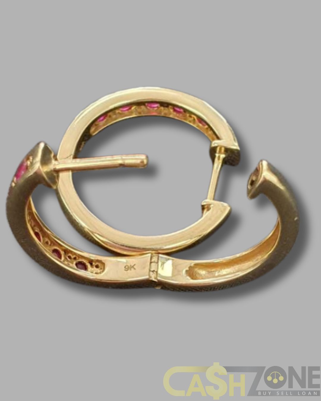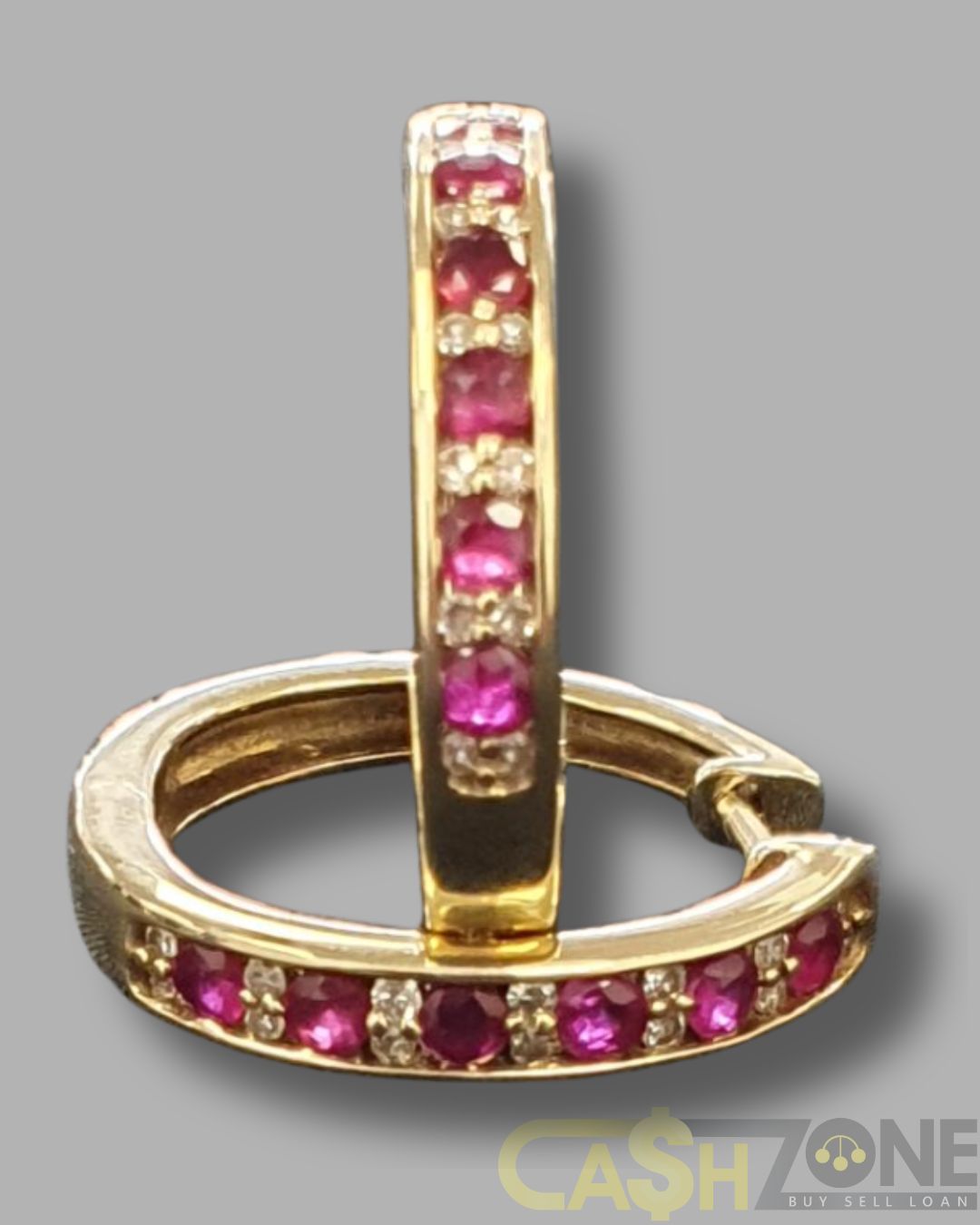 Ladies 9ct Yellow Gold Earrings With Red & Clear Stones.